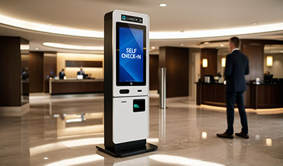 A visitor management kiosk automates check-ins, identity verification, and badge printing for...